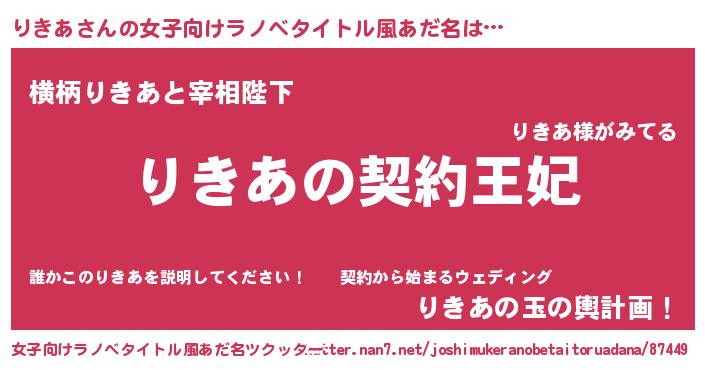 | 男性向けラノベタイトル風あだ名 | 『りきあという概念が存在しない退屈な世界 』 |