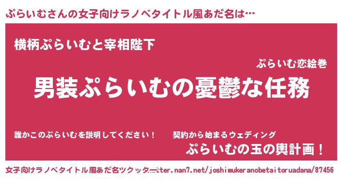 | 男性向けラノベタイトル風あだ名 | 『うちのぷらいむが世界を掌握している!』 |