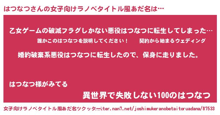 | 男性向けラノベタイトル風あだ名 | 『ハツナツスレイヤー』 |