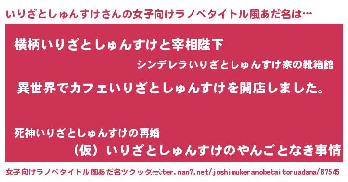 | 男性向けラノベタイトル風あだ名 | 『誰もが恐れるあのいりざとしゅんすけが、ぼくの専属メイドになるようです。』 |