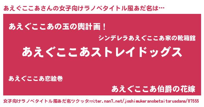 | 意味不明あだ名 | 『自称あえぐここあ』 |