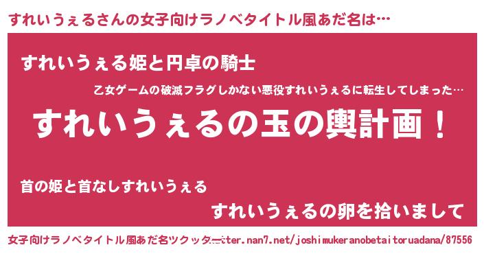 | 胡散臭い通販商品みたいなあだ名 | 『億万長者になれるブレスレット…その名も「すれいうぇる」』 |