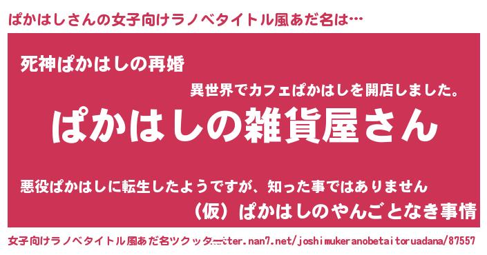 | 男性向けラノベタイトル風あだ名 | 『やはりぱかはしの青春ラブコメはまちがっている 』 |