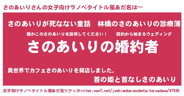 | 意味不明あだ名 | 『さのあいりフォーエバー』 |