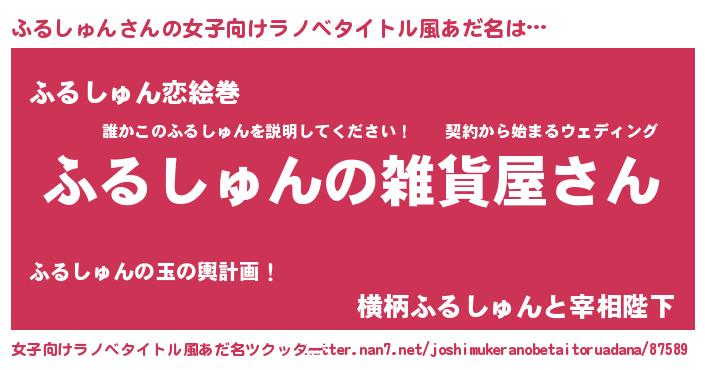 | 男性向けラノベタイトル風あだ名 | 『やはりふるしゅんの青春ラブコメはまちがっている 』 |