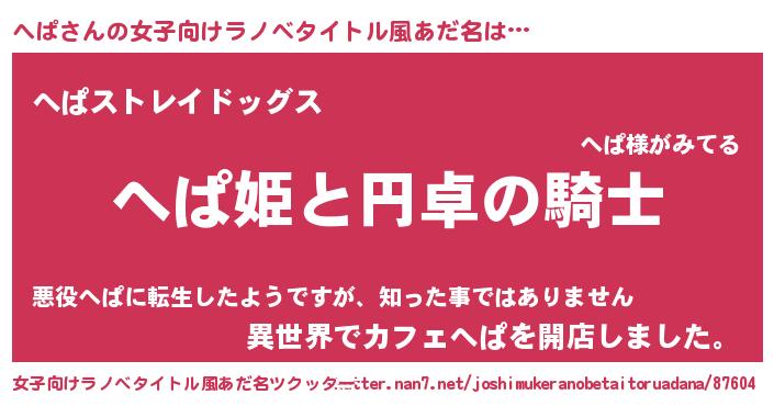 | 男性向けラノベタイトル風あだ名 | 『へぱの憂鬱』 |