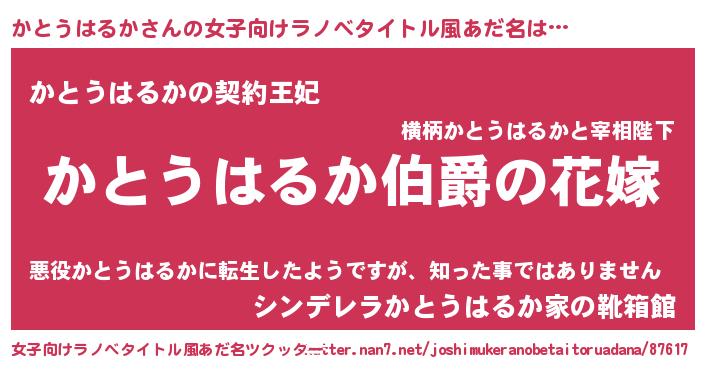 | ファンタジー風あだ名 | 『エターナルカトウハルカー』 |