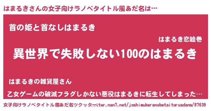 | 胡散臭い通販商品みたいなあだ名 | 『絶対に幸福をもたらす健康食品…その名も「はまるき」』 |