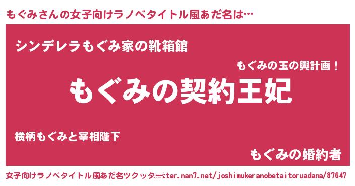 | 胡散臭い通販商品みたいなあだ名 | 『来世でも幸せになれる水素水…その名も「もぐみ」』 |