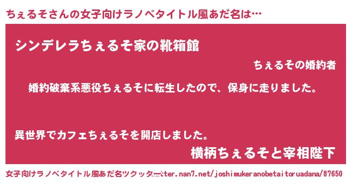 | 男性向けラノベタイトル風あだ名 | 『転生したらちぇるそだった件』 |