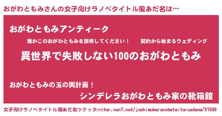 | 男性向けラノベタイトル風あだ名 | 『おがわともみという概念が存在しない退屈な世界 』 |