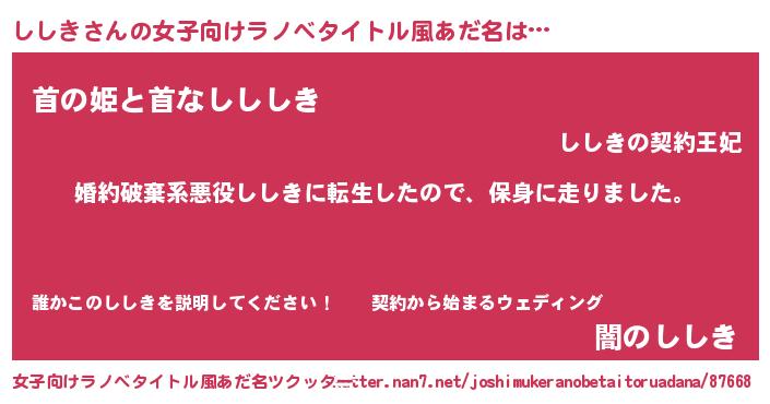 | 胡散臭い通販商品みたいなあだ名 | 『テレビで話題のアガリクス…その名も「ししき」』 |