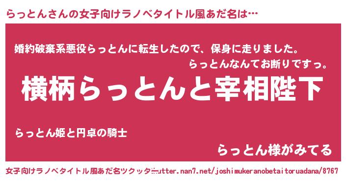 | 男性向けラノベタイトル風あだ名 | 『らっとんに滅ぼされるだけの簡単なお仕事です』 |