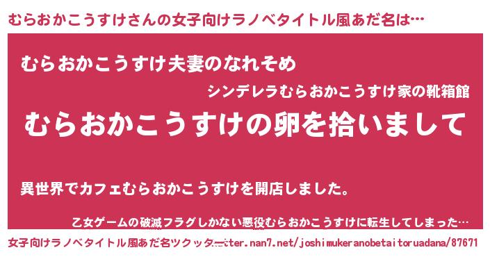 | 男性向けラノベタイトル風あだ名 | 『ダンジョンにむらおかこうすけを求めるのは間違っているだろうか』 |