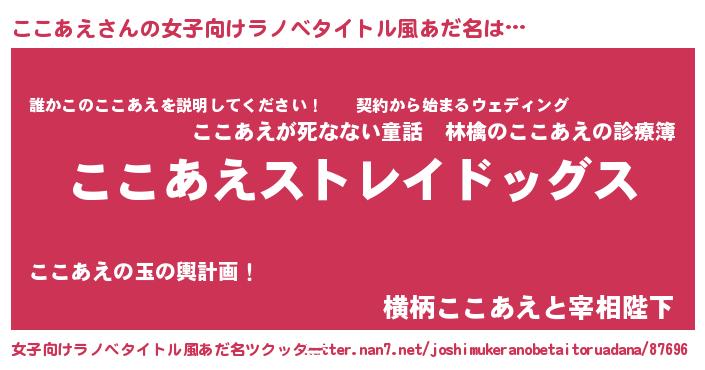 | 男性向けラノベタイトル風あだ名 | 『Re:ここあえから始める異世界生活』 |