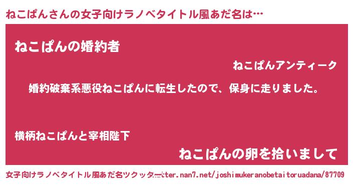 | 料理風あだ名 | 『ねこぱんごはん』 |