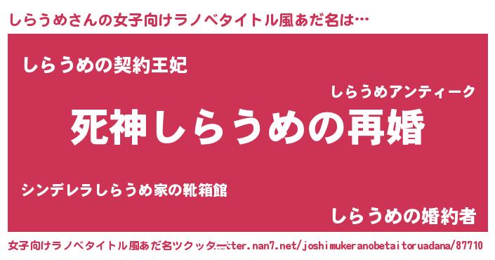 | ヒーロー風カッコイイあだ名 | 『天空の使者しらうめ』『ネオシラウメ』 |