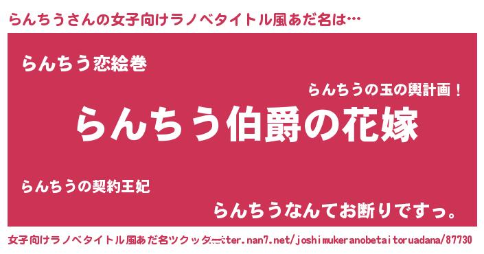 | 意味不明あだ名 | 『らんちうフォーエバー』『自称らんちう』 |