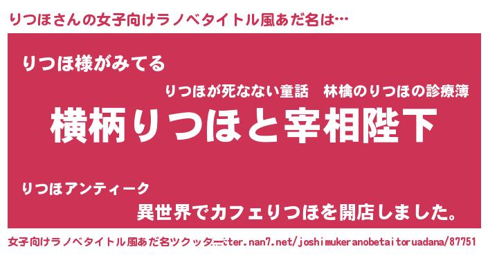 | 男性向けラノベタイトル風あだ名 | 『りつほに滅ぼされるだけの簡単なお仕事です』 |