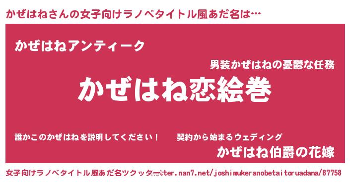 | 可愛いあだ名 | 『かぜちゅっちゅ』『かぜうちぇる』 |