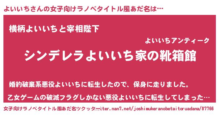 | 意味不明あだ名 | 『住所不定無職よいいち(47歳)』 |