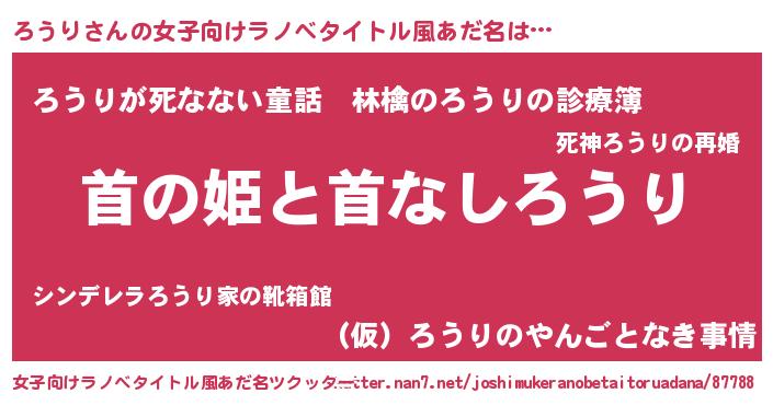 | ヘコむあだ名 | 『ろうにー』『ろうり(爆)』『ろうを』 |
