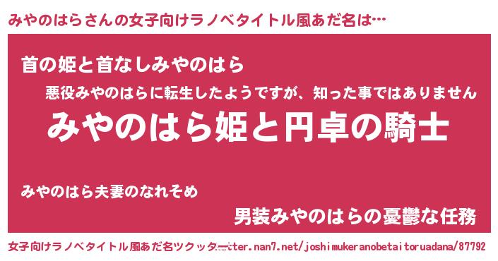 | 意味不明あだ名 | 『ペロリンみやのはら』『自称みやのはら』 |