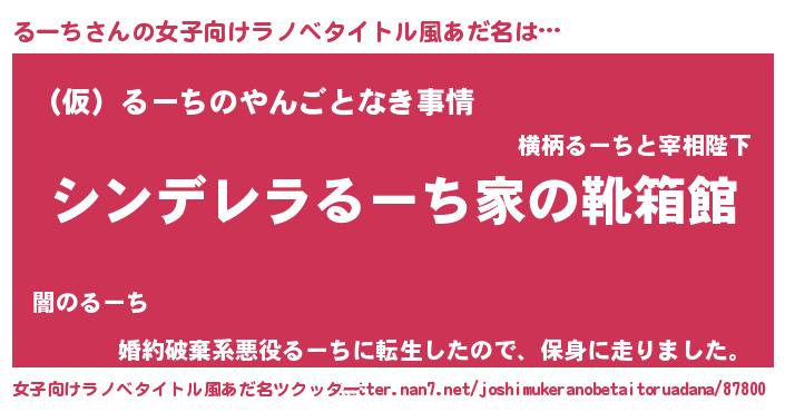 | 胡散臭い通販商品みたいなあだ名 | 『必ず成功する水晶球…その名も「るーち」』 |