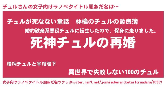 | ヒーロー風カッコイイあだ名 | 『慈愛の使者チュル』『仮面チュダー』 |