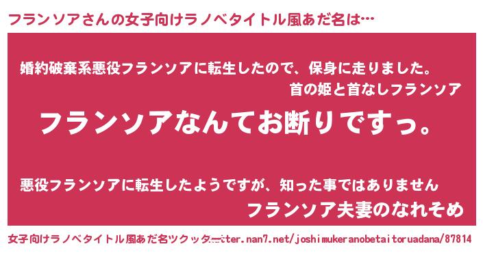 | 男性向けラノベタイトル風あだ名 | 『魔法科高校のフランソア』 |