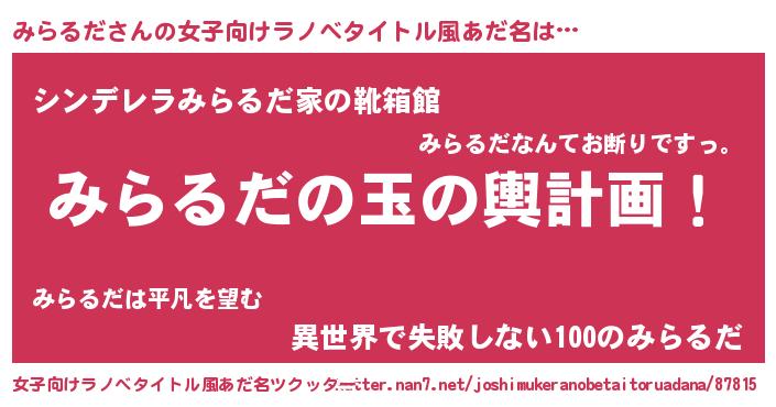 | 男性向けラノベタイトル風あだ名 | 『転生したらみらるだだった件』 |
