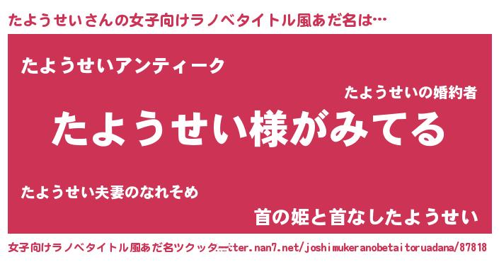 | 男性向けラノベタイトル風あだ名 | 『たようせいの嫁は女の子じゃないと思った?』 |