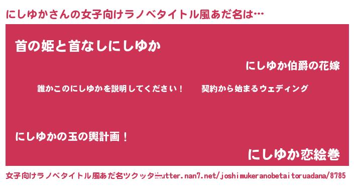 | 男性向けラノベタイトル風あだ名 | 『ニシユカアートオンライン』 |