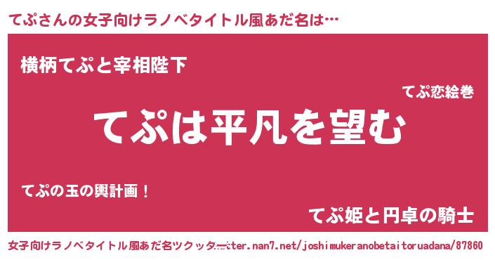 | 男性向けラノベタイトル風あだ名 | 『ダンジョンにてぷを求めるのは間違っているだろうか』 |