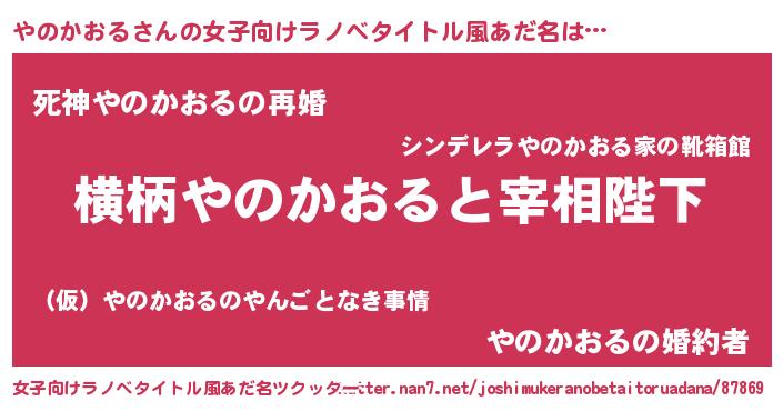 | 男性向けラノベタイトル風あだ名 | 『やのかおるに滅ぼされるだけの簡単なお仕事です』 |
