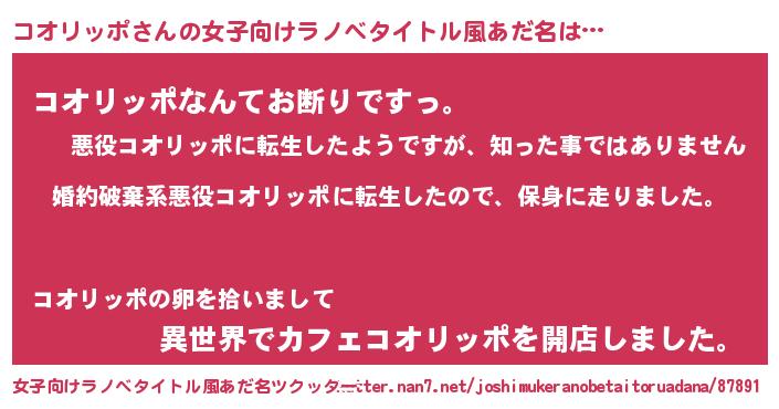 | ファンタジー風あだ名 | 『ユリコオヴァット』『ゼコオトゥ』 |