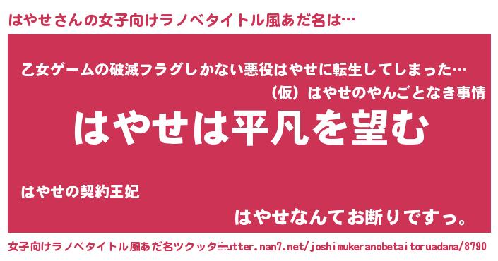 | 意味不明あだ名 | 『とにかく怪しいはやせ』『自称はやせ』 |