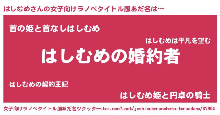 | ファンタジー風あだ名 | 『エターナルハシムメー』『ハシフェル』 |