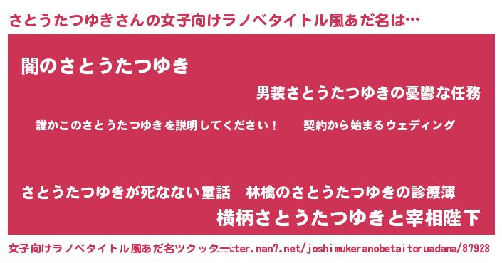 | 男性向けラノベタイトル風あだ名 | 『サトウタツユキアートオンライン』 |