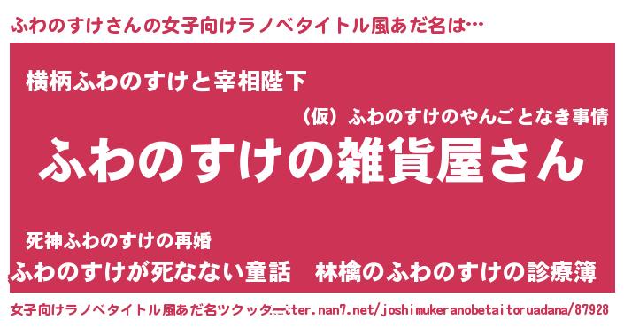 | 男性向けラノベタイトル風あだ名 | 『やはりふわのすけの青春ラブコメはまちがっている 』 |