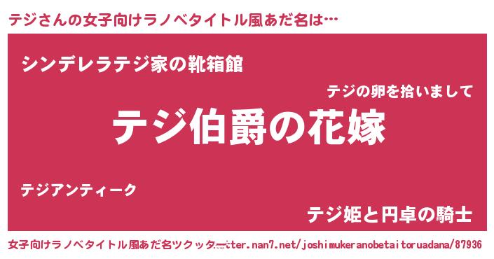 | 男性向けラノベタイトル風あだ名 | 『やはりテジの青春ラブコメはまちがっている 』 |