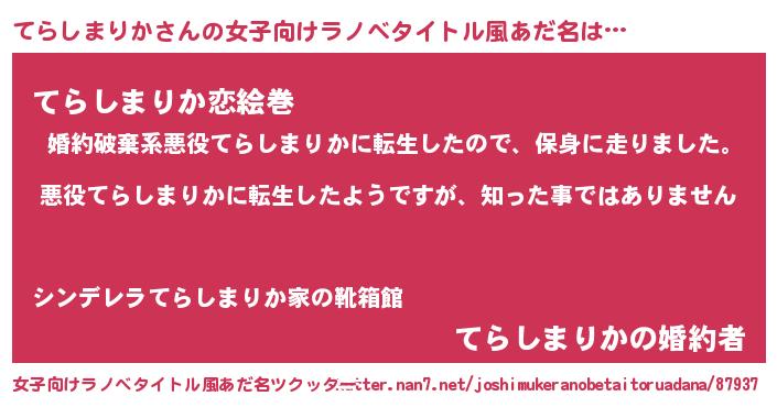 | 男性向けラノベタイトル風あだ名 | 『この素晴らしい世界にてらしまりかを!』 |