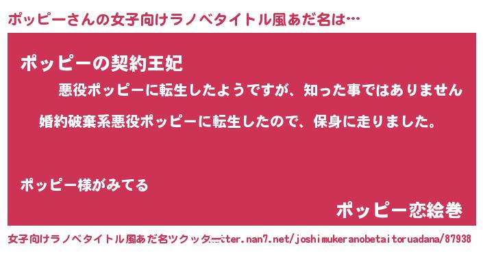 | ヒーロー風カッコイイあだ名 | 『ネオポッピー』『慈愛の使者ポッピー』 |