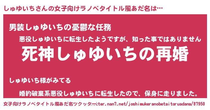 | ヘコむあだ名 | 『しゅっ子』『しゅゆいち(笑)』 |