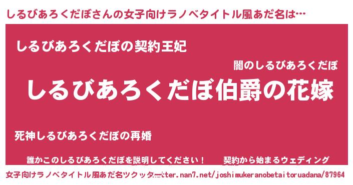 | ファンタジー風あだ名 | 『エターナルシルビアロクダボー』 |