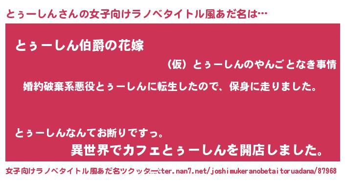 | ヘコむあだ名 | 『豆乳』『とぅーしん(小並感)』 |