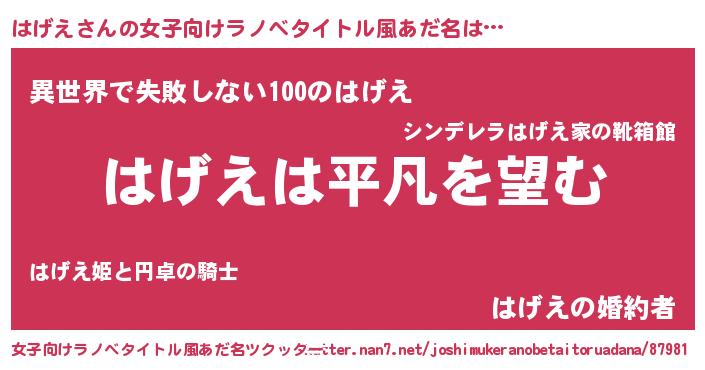 | ヘコむあだ名 | 『はげ太郎』『はげえ(苦笑)』 |