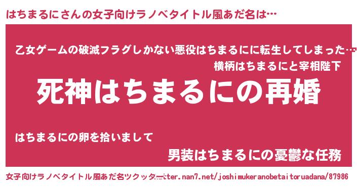 | 男性向けラノベタイトル風あだ名 | 『ノーゲーム・ノーハチマルニ』 |