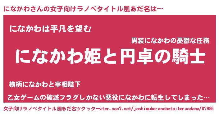 | 男性向けラノベタイトル風あだ名 | 『ニナカワアートオンライン』 |