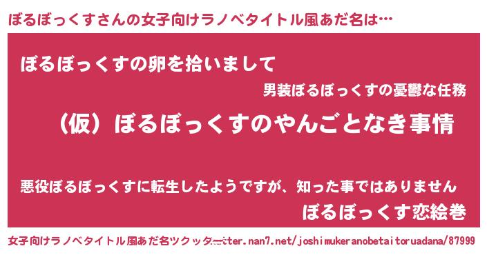 | 男性向けラノベタイトル風あだ名 | 『ぼるぼっくすの憂鬱』 |